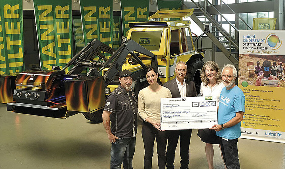 »Ich freue mich sehr, dass wir mit unserer Spende dazu beitragen können, Kindern ein besseres Leben zu ermöglichen«, sagt Jörg Engels, Direktor Brand Management Automotive Aftermarket bei Mann+Hummel, bei der Übergabe des Spendenschecks am Unternehmenssitz in Ludwigsburg an Guntram Kunschner, stellvertretender Leiter UNICEF-Arbeitsgruppe Stuttgart. Ersteigert wurde das Unikat von einem Autoersatzteilehändler aus Reutlingen, der den umgebauten Traktor für Firmenevents einsetzen will.