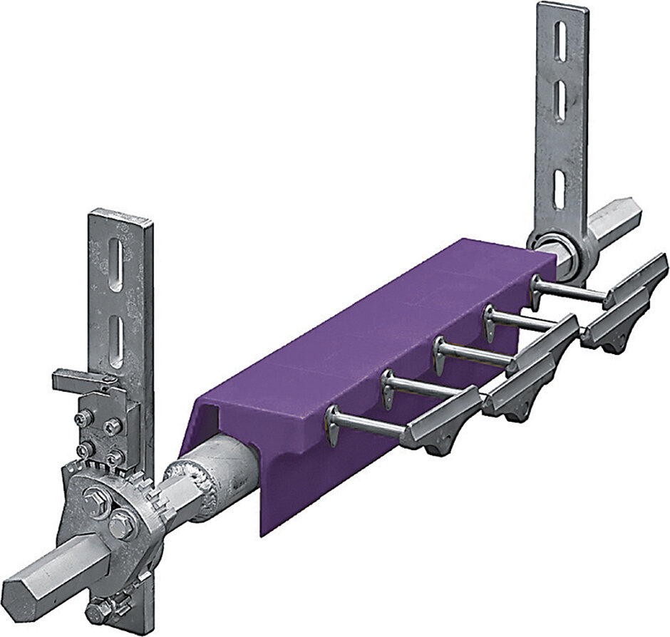 Zu fördernde Materialien können feucht, klebrig, trocken oder abrasiv sein und am Förderband hängen bleiben. Dieser Rücktrag stellt einen nicht zu unterschätzenden Kostenfaktor für die Betreiber dar. Um diesen zu minimieren, setzen sie meist neben Kopf- auch Sekundärabstreifer ein. Diese erhöhen die Reinigungswirkung auf mehr als 90 %, weil sie auch sehr hartnäckiges Material zuverlässig entfernen. Flexco Europe geht mit der Baureihe T-Type einen anderen Weg: Der kompakte Sekundärabstreifer soll direkt hinter der Kopftrommel auch festsitzende Rückstände vom Band entfernen. Verbaut sind Hartmetallklingen, die sich um ± 15° drehen und sich so der Bandoberfläche anpassen lassen.