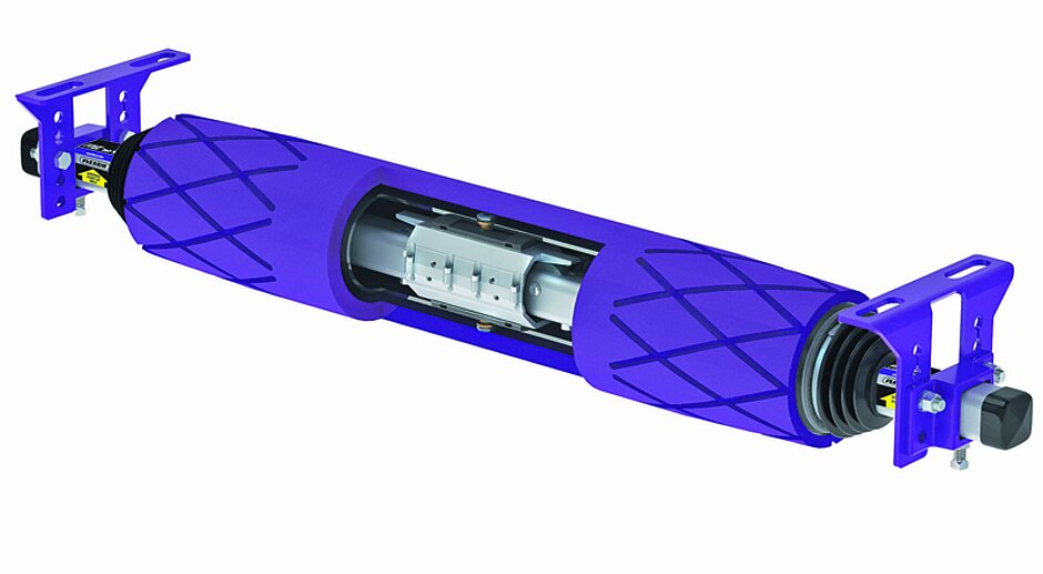 Bauma-Besucher können sich zudem über die Bandzentrierstation PTEZ informieren. Diese eignet sich für leichte bis schwere Anwendungen und für reversierbare Bänder mit bis zu 2 100 mm Breite. Betreiber von Förderanlagen können sie auch bei Bändern mit verschlissenen oder beschädigten Kanten einsetzen. Durch die einfache Bauweise der Halterungen und Bauteile lässt sich die Station einfach und schnell montieren. Das Besondere an PTEZ – die Rolle für die Bandführung ist ab dem Standardmodell mit Polyurethan beschichtet. Neu im Programm ist aber ebenso eine kostenoptimierte Version, bei der statt Polyurethan Gummi zum Einsatz kommt.