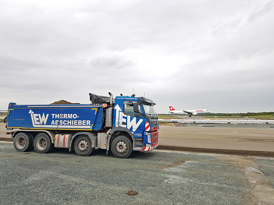 Mit einer Flotte der thermoisolierten Fliegl-Abschieber konnte binnen drei Wochen auf rund 27 000 m² ein mehrschichtiger Aufbau, bestehend aus einer hydraulisch gebundenen Tragschicht (HDG), Asphalttrag-, Binder- sowie Deckschicht eingebaut werden.
