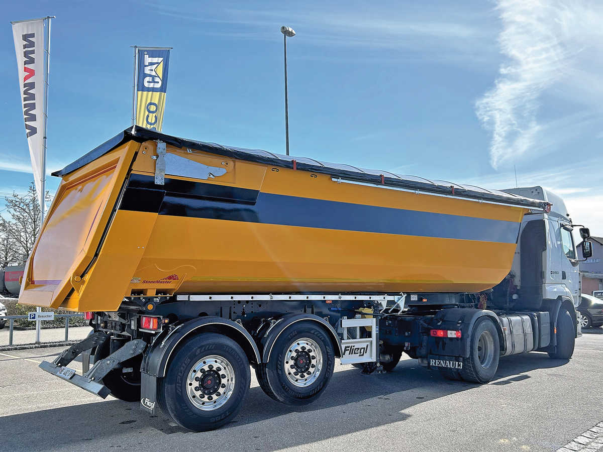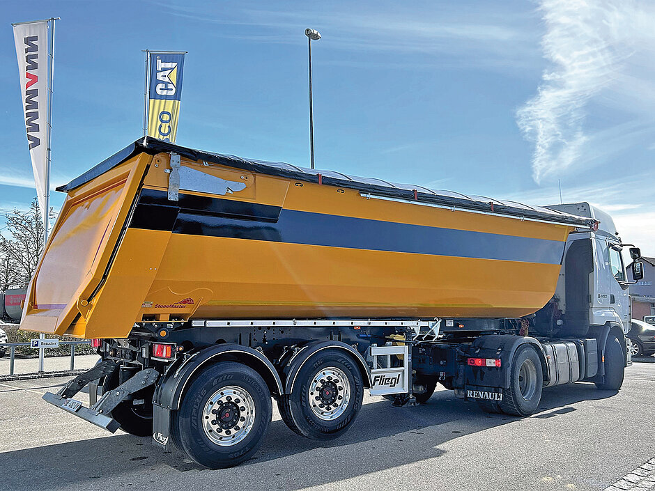 Fliegl verbaut zudem eine horizontal verstellbare Königszapfenaufnahme; damit lässt sich der Sattelkipper sowohl mit einer zwei- als auch einer dreiachsigen Zugmaschine bewegen. »Der Kunde fährt 6x4-Zugmaschinen, daher wurde bei diesem Trailer der Abstand von der ersten zur zweiten Königzapfenposition leicht geändert«, berichtet Florian Zwahlen von Avesco.