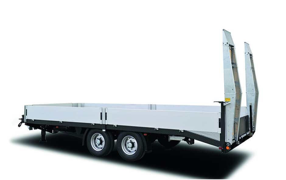 Bis zu drei Laderampen ermöglichen die Auffahrt von Spezialmaschinen. Bei Bedarf kann auch mit einem Planenaufbau die Ladung gegen Witterung geschützt werden. In der Tridem-Achsausführung sind bis zu 30 t Gesamtgewicht möglich. §
