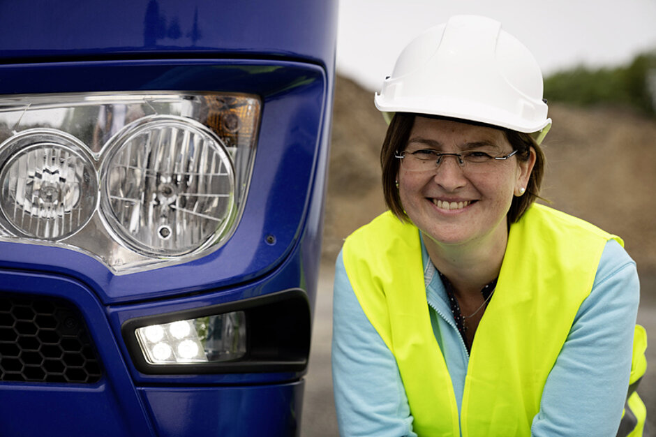 Die 42-jährige selbst fahrende Unternehmerin hat bereits seit gut einem Jahr einen der ersten neuen Arocs, die im Mercedes-Benz Werk Wörth vom Band gelaufen sind, im Einsatz. Es handelt sich um eine Zugmaschine, die im Alltag einen Kippsattelauflieger zieht. „Das Fahrzeug ist primär auf der Straße unterwegs, muss aber auch schwieriges oder rutschiges Gelände auf Baustellen meistern“, erläutert Trabert, Junior-Chefin im familieneigenen Fuhr- und Baggerbetrieb ihrer Mutter Luzia Knackert aus Vacha in Thüringen. „Aus diesem Grund haben wir den Arocs mit MirrorCam, neuem Predictive Powertrain Control (PPC) und HAD bestellt.“