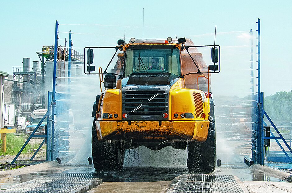 Der Einsatz von MobyDick-Reifen- und -Demucking-Anlagen hat in der Praxis immer wieder gezeigt, dass sich die Staubentwicklung durch die sauberen und nassen Räder erheblich mindern lässt.