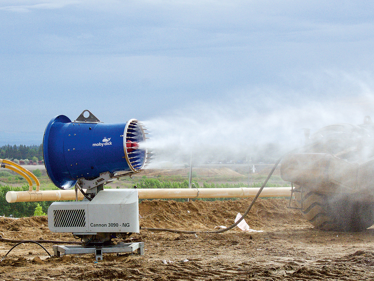 Neben der Produktpalette im Bereich der Waschanlagen (das bauMAGAZIN berichtete in Heft 9/22, Seite 69) präsentiert das Schweizer Unternehmen im Segment Staubbindung eine bereits zur vergangenen Messe im Jahr 2019 vorgestellte adaptive Anlagengeneration, die mit der Unterstützung des Instituts für Aerodynamik der Zürcher Hochschule für Angewandte Wissenschaften entwickelt wurde. Die MobyDick-Staubbindesysteme arbeiten nach dem Prinzip der Staubbindung durch feinste Wassertropfen und versprechen einen hervorragenden Wirkungsgrad bei minimalen Geräuschemissionen. Wurfweite, Sprühmuster sowie Wasser- und Strombedarf lassen sich frei wählen und erlauben es, jederzeit flexibel auf wechselnde Einsatzbedingungen zu reagieren. t