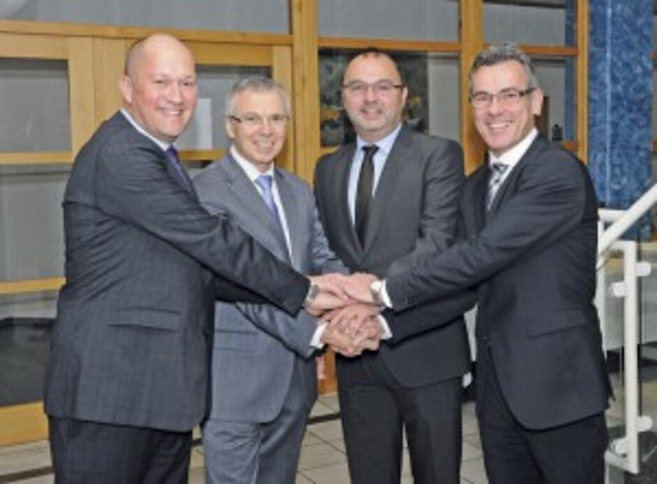 Matthias Keller (re.) ist mit Wirkung zum 1. Januar 2012 zum Geschäftsführer der Volvo Construction Equipment Germany GmbH ernannt worden und folgt auf Robert Kramp (2. v. li.), der nach mehr als 46 Jahren Tätigkeit bei der Zettelmeyer Baumaschinen GmbH und Volvo CE in den Ruhestand geht. Der Verabschiedung von Robert Kramp wohnten auch die übrigen beiden Geschäftsführer der Firma bei: Thomas Weber, er ist verantwortlich für das deutsche Händlernetz, sowie die Volvo Baumaschinen Bayern GmbH (2. v. re.) sowie Carl Gustaf Göransson (General Manager Independent Dealers Region Europe; li).