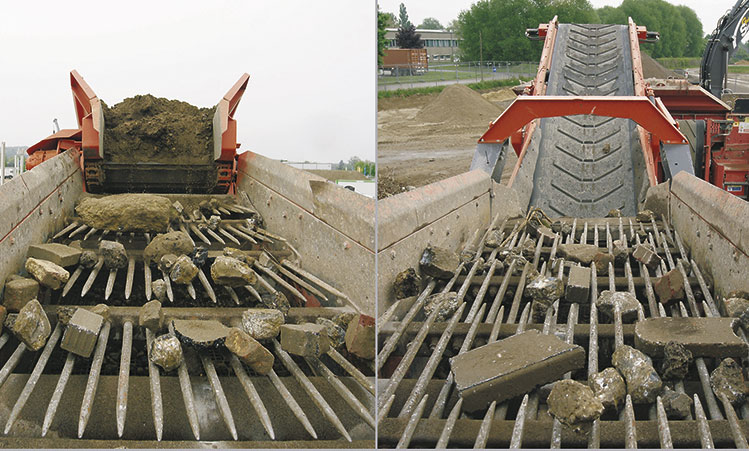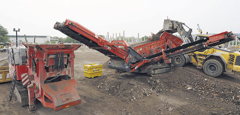 In der Baustoffaufbereitung setzt Siebers seit 2011 auf Sandvik-Technologie: Als erster deutscher Kunde entschied man sich damals für den kompakten Sandvik-Backenbrecher QJ241. Die raupenmobile 34-t-Anlage beitet einen schnellen Standortwechseln, große Mobilität vor Ort und hohe einsatztypische Produktionsleistungen bis zu 150 t/h. Als Siebanlage nutzte Siebers bislang eine kompakte Vorsiebeinheit der 20-t-Klasse. Mit einer Siebfläche von 1,2 x 2,7 m entsprach sie zwar den typischen Mengenaufkommen (maximal 5 000 t/Baustelle), bei größeren Projekten oder in Kombination mit dem QJ241 Backenbrecher stieß sie jedoch an ihre Leistungsgrenzen.»Wir benötigten eine Anlage mit größeren Aufgabestückgrößen, besserer Produktionsleistung, höheren Austragsbändern für kürzere Rüstzeiten der Brecher-/Sieb-Kombination und flexibler dimensionierten Haldenkapazitäten im Ein-Mann-Laderbetrieb«, zählt Paul Siebers auf. »Und dies möglichst noch mit einem Transportgewicht um die 30 t und einer Siebcharakteristik, die alle Anforderungen an qualifiziertes, einbaufertiges Endmaterial erfüllt.« Nach ausgiebigen Produktvergleichen unter anderem in Zusammenarbeit mit dem angestammten Liefer- und Servicepartner Trump Technik aus Velbert entschied sich Siebers Tiefbau für die Grobstück-Siebtechnologie von Sandvik Construction. Anfang 2013 übernahm man das in Leistungscharakteristik und -vermögen den Anforderungen entsprechende Modell QE340 für umfassende Leistungstests als langfristige Mietmaschine aus dem Trump-Mietpark.Kennzeichen der Grobstück-Siebanlagen der Sandvik-QE-Baureihe sind große Siebflächen der Doppeldeck-Siebkästen, die dank hohem Hub sehr effizient arbeiten. Die Übergaben von den serienmäßigen Plattenband-Aufgebern bzw. zu den Überkorn-Austragsbändern sind besonders breit gestaltet, um auch bei großen Aufgabestückgrößen oder sehr bindigen Materialien einen störungsfreien Betrieb zu gewährleisten. Für Einsätze als Primärsieb im Steinbruch sind Rahmen und Fahrwerke robust ausgelegt, was auch das Positionieren bzw. Versetzen auf Baustellen erheblich vereinfachen soll. In der Nachklassierung lassen sich Ober- und Unterdeck der QE-Modelle mit unterschiedlichsten Siebmedien ausrüsten. Hohe Produktionsraten mit bis zu drei Endkörnungen garantieren dabei geräumige Übergaben zu den beiden Seitenaustragsbändern, die mit großen Reichweiten und -höhen zudem große Haldenkapazitäten für den kosteneffizienten Ein-Mann-Laderbetrieb gewährleisten.QE341