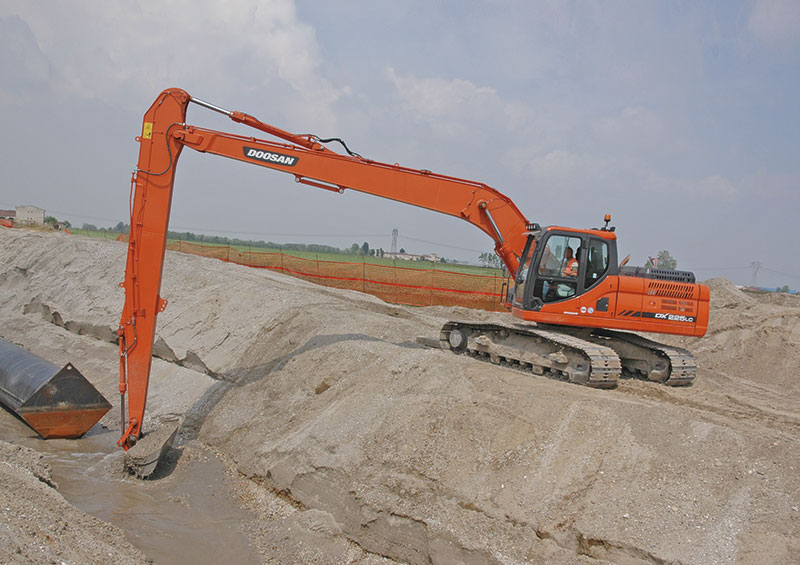 Giancarlo Fiore weiter: »Jeder Bagger erfüllt bei den verschiedenen Abschnitten dieses Bauprojekts seine jeweilige Aufgabe. In der Regel setzen wir die Modelle DX225NLC und DX235NLC für allgemeine Baggerarbeiten und für die Verstärkung der Dämme und Deckschichten ein. Die größeren Modelle werden ebenfalls für die Dämme, für das Sortieren von Material mithilfe von Speziallöffeln und für Hubsystemgeräte eingesetzt.« Die SALP-Mitarbeiter profitieren von der hohen Leistungsfähigkeit dieser Bagger, die entweder mit festem Unterwagen oder mit Unterwagen mit variabler Breite bis zu 2,54 m ausgestattet sind.