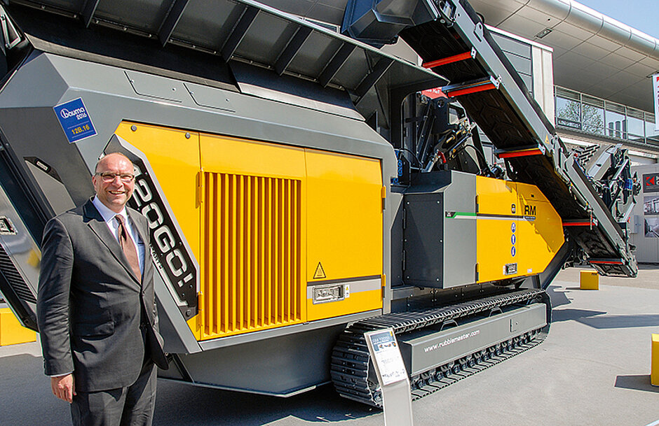 Das neue RM-Flaggschiff hat eine Durchsatzleistung von bis zu 350 t/h und katapultiert Rubble Master damit in eine andere Liga. »Das ist für uns ein Schritt in eine neue Ära«, sagte Gerald Hanisch, der ankündigte, dass Rubble Master in der Zukunft verstärkt auch in der Mining-Industrie präsent sein wolle. »Mit seinen zahlreichen Applikationen eröffnet uns der RM 120GO! ganz neue Märkte«, ergänzte Vertriebsleiter Shaun Montgomery. »Wir haben mehrere Anfragen von großen Organisationen aus dem Mining-Bereich.« Auch im für Rubble Master »ganz starken Markt Deutschland« wolle man weiterhin Marktanteile hinzugewinnen. »Wir sind in den vergangenen drei bis vier Jahren signifikant gewachsen und rechnen für 2016 insgesamt mit einem Wachstum von rund 20 %«, sagte Gerald Hanisch, wobei man mit einem Absatz von bis zu 170 Brechern weltweit plane. »Wir sind mittlerweile weltweit eine sehr etablierte Marke.«