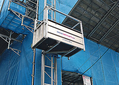 Nicht zu unterschätzen ist auch der Vorteil, den das Unimast-System bietet. Das Mastsystem ist bei allen GEDA-Zahnstangenaufzügen von 300 kg bis 2 000 kg Tragfähigkeit einsetzbar. Vor allem bei Betreibern von Mietparks werden somit Investitionen niedrig und Platz- und Lagerbedarf gering gehalten. Die Transportbühne 300 Z/ZP rundet das Mietpark-Sortiment optimal ab, denn auch für schwer zugängliche Baustellen kann den Kunden damit eine Lösung geboten werden, die den Arbeitsablauf erheblich erleichtert. §