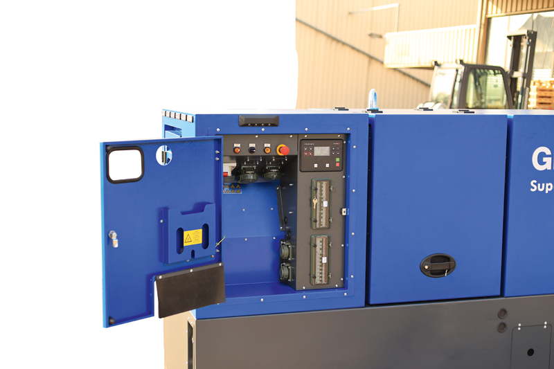 Gleichzeitig setzt GEKO auf eine optimale Bedienbarkeit und zuverlässige Vandalismussicherheit. Ausführungen wie der »Super Silent 35019« verfügen darüber hinaus über Flügeltüren zum Schutz vor Regen und Schnee bei der Wartung im Freien. Um die Türen herum befinden sich zudem Wasserablaufkanten. Hinzu kommen nützliche Extras wie ein innenliegender Einfüllstutzen, Grundrahmen als Auffangwanne mit Ablassstopfen für aufgefangene Flüssigkeiten, ein abschließbares Bedienfeld, eine Fremdstartsteckdose oder ein integrierter Dummyload zur Regeneration des Partikelfilters. Für eine sichere Bedienung sorgen wiederum ein Heckwarnsystem und eine Umfeldbeleuchtung. Der 35019 verfügt außerdem über eine Kranöse zur einfachen Verlastung sowie Kufen mit Staplerlaschen.