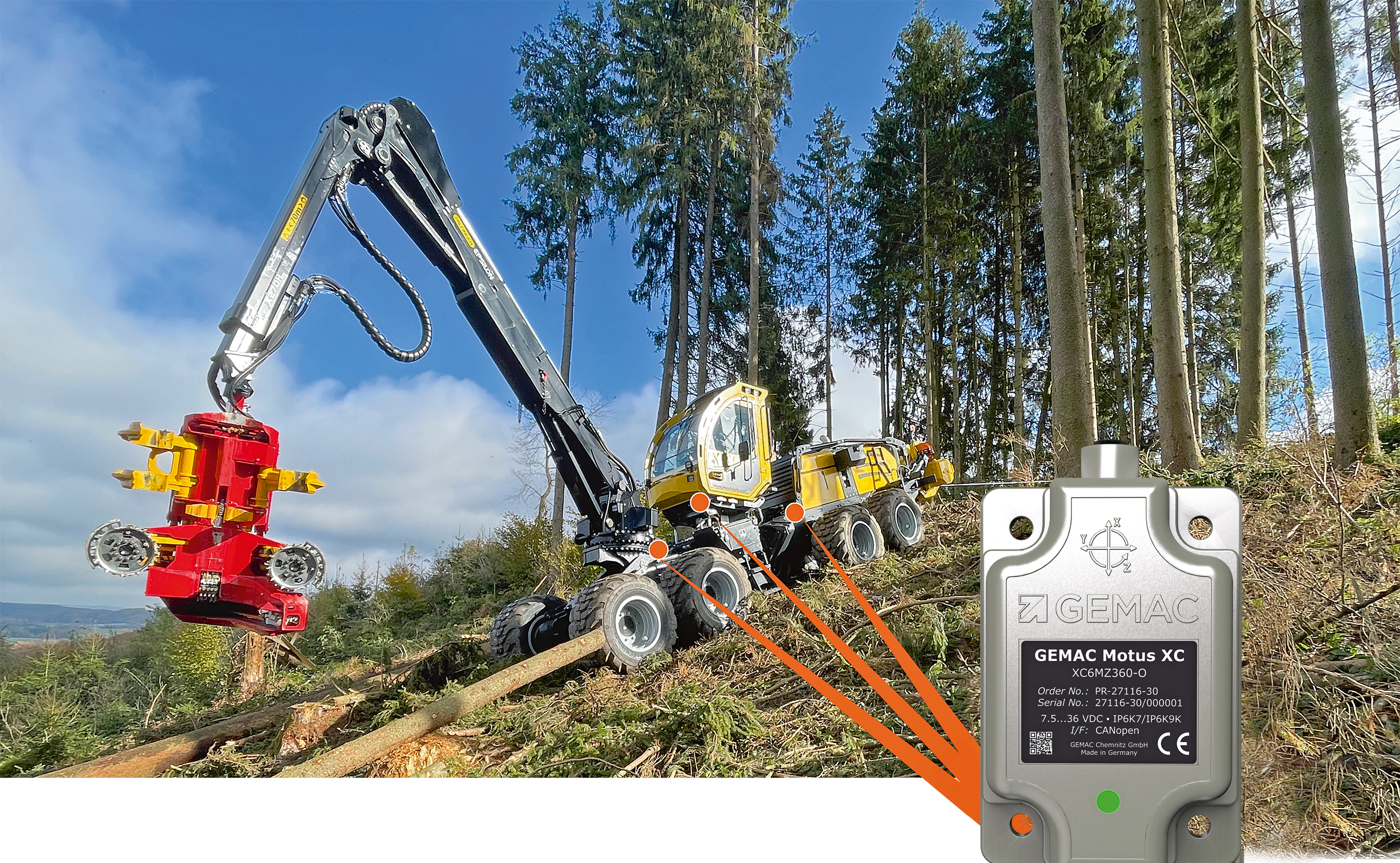 Mit dem Gemac Motus – der laut Anbieter ersten Power-IMU für Mobile Power-Maschinen – ist eine vielseitig konfigurierbare Sensormesseinheit verfügbar, mit der eine 6-Achs-Bewegungserfassung an mobilen Maschinen ermöglicht wird. HSM setzt als langjähriger Partner von Gemac den Gemac Motus beispielsweise bereits erfolgreich in seiner Forstmaschine Harvester 405H ein. »Die Entscheidung für Gemac fiel durch die lange zuverlässige Zusammenarbeit, die gute Betreuung, die große Flexibilität in der Sensor-Konfiguration und den Spannungsausgang«, sagt HSM-Entwicklungsingenieur Max Skibbe. »Die gesteckten Ziele sind voll erreicht. Es kommt zu einer sehr guten Kompensation der Fahrzeugbeschleunigungen und die Automatikfunktionen können sehr präzise und schnell arbeiten. Der Komfort für den Fahrer wurde merklich gesteigert und die Maschinenproduktion erhöht.«