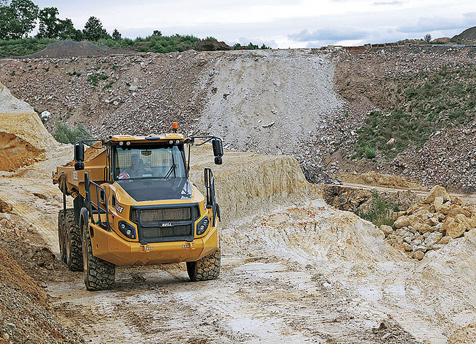 Dies zeigt sich auch im Knüllwalder Tagebau mit seinen vielfältigen Transportaufgaben: Während für das Vorgängermodell B25D in der täglichen Praxis noch Durchschnittsverbräuche von 9 l/h bis 12 l/h dokumentiert sind, meldet das satellitengestützte Management-System Fleetmatic für den neuen Bell B25E ein Drei-Monats-Mittel von unter 8 l/h.