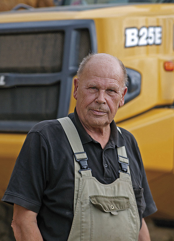 Der Austausch des bisherigen B25D durch das Nachfolgemodell B25E erfolgte turnusgemäß im August nach 4 000 Betriebsstunden. Regelmäßig alle drei bis vier Jahre wechselt Krug die Großgeräte im Betrieb, die wie die übrige Technik von nur vier erfahrenen Mitarbeitern bewegt werden. »Ich will die Maschinen nicht besitzen, sondern damit arbeiten«, erklärt Krug seine Strategie, die insbesondere auch auf eine hohe Verfügbarkeit im witterungssensiblen Ganzjahresbetrieb ausgerichtet ist.