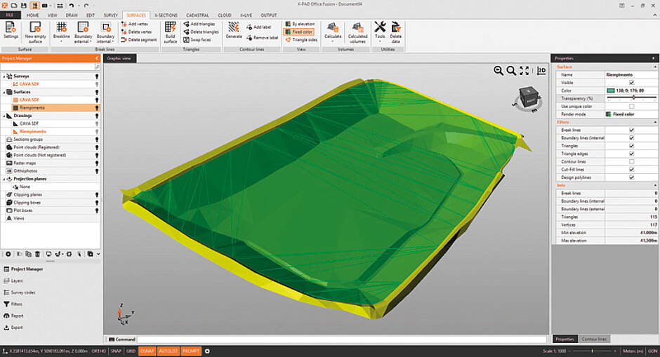 Sollen die Aufmaße auch zur belastbaren Abrechnung dienen, hält Geomax auch die Office-Software X-Pad Fusion bereit. Neben einem topografischen CAD bietet X-Pad Fusion unter anderem auch die REB-konforme Berechnung von Erdmassen. Diese werden detailliert wiedergegeben und auch grafisch dargestellt. An beliebigen Positionen lassen sich Schnitte erzeugen oder Füllmengen ebenso grafisch darstellen. Die Ausgabe aller Aufmaße in übersichtlichen Lageplänen ist ebenfalls integriert. §