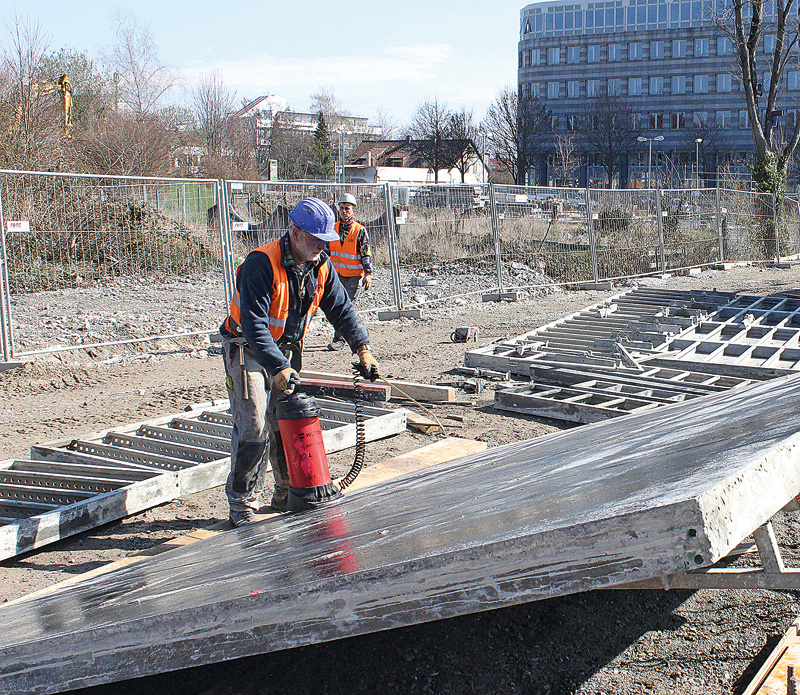 Bauleiter Michael Sillak zeigt sich von dem Trennmittel Oest Econol Bio B Plus überzeugt. »Auf der Baustelle kamen im Wesentlichen Hünnebeck-Manto-Rahmenschalungen zum Einsatz. Econol Bio B Plus lieferte sehr gute, verlässliche Ergebnisse. Ein zusätzlicher Vorteil dabei war der für den Anwender unbedenkliche Auftrag auf die Schalungen.«