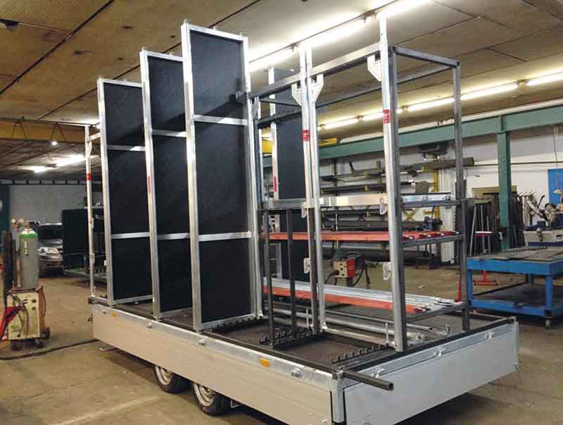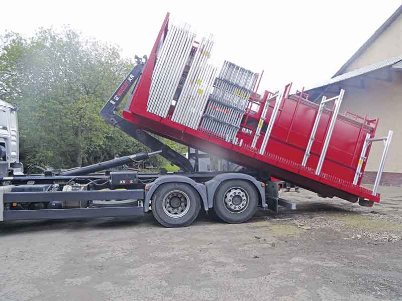 Zu den typischen Problemen im Gerüsttransport zählen die Lagerung auf der Baustelle, der unsichere Transport, eine ineffiziente Entladung, Schwierigkeiten bei der Bestandsaufnahme, ein hoher Materialverschleiß und eine leidige Fuhrparkbindung. Bernhard Weyres leitet einen metallverarbeitenden Betrieb in der Eifel. Dessen Haupttätigkeitsfeld ist der Unterwasserschallschutz während des Windkraftanlagenbaus im Meer, entsprechend häufig ist Weyres mit dem Auto unterwegs. Dabei waren ihm oft mit Gerüst beladene Lkw und Pkw mit Anhängern aufgefallen, die ihn zum Nachdenken brachten, waren die Gerüstelemente doch häufig eher »wacklig« verladen.