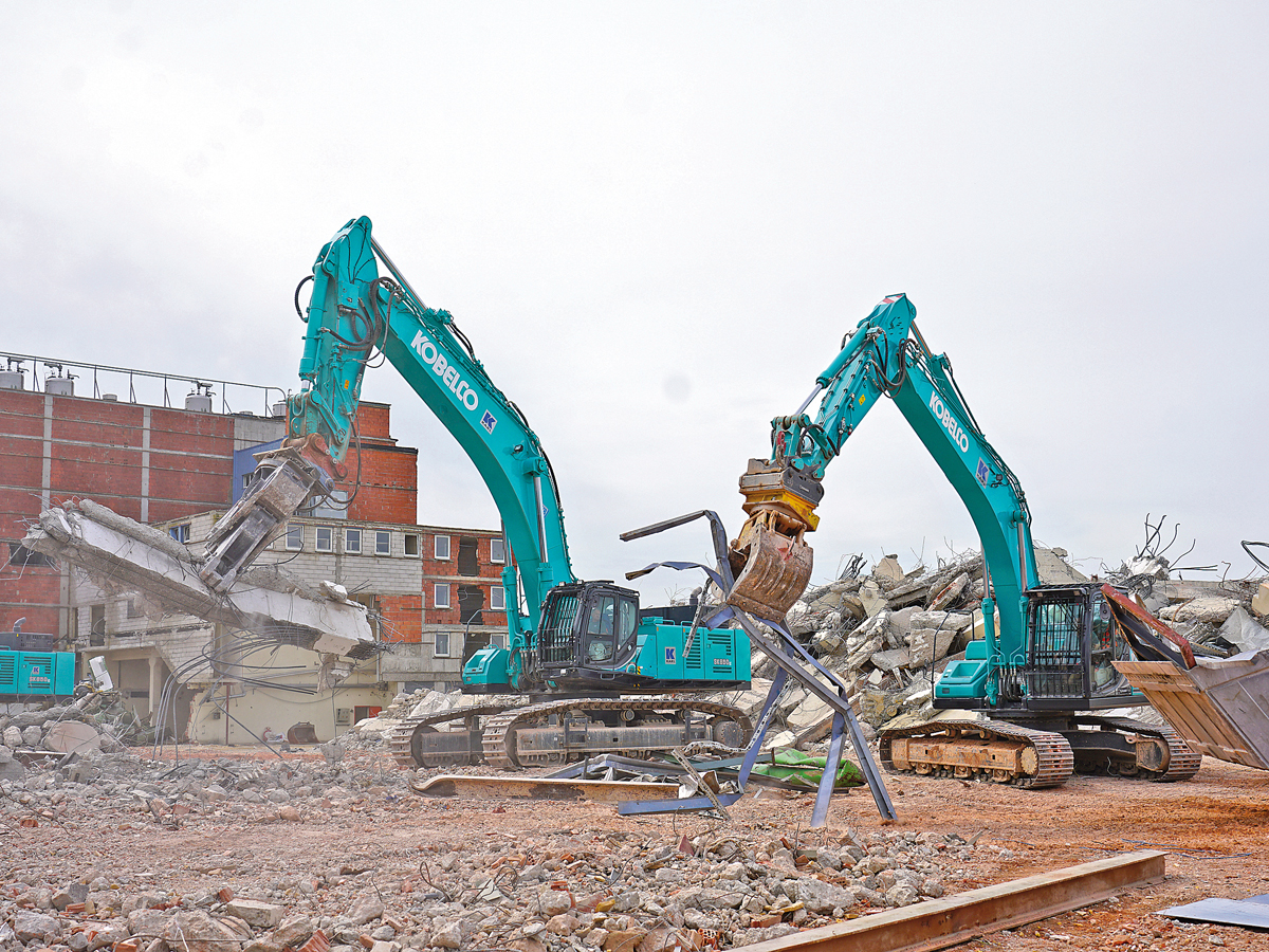 Zur großen Wirtschaftlichkeit im Betrieb trägt auch das innovative Stiel-Zwischenfluss-System von Kobelco bei: Rein durch das Gewicht des absenkenden Auslegers wird der ausfahrende Stiel-Zylinder direkt mit Öl aus dem Auslegerzylinder versorgt, was unnötig große Ölmengen oder Arbeitsdrücke vermeidet. Auch nach mehreren Tausend Betriebsstunden ist Polier Daniel Sellner von der Wirtschaftlichkeit der Kobelco-Großbagger überzeugt: »Selbst unter Volllast arbeiten wir mit unseren 85-Tonnern mit 44 l bis 48 l pro Stunde, was für diese Maschinengröße beachtlich ist. Und auch unser »SK500LC« beschränkt sich im Mittel auf rund 26 l/h und liegt gleichauf mit wesentlich leistungsschwächeren Maschinen.« Grundsätzlich gelten die Kobelco-Bagger als vielseitige Arbeitstiere, die insbesondere auf eine Kombination aus Leistungskraft, Produktivität und Langlebigkeit setzen – und das sind, gerade im Abbruchsegment, unerlässliche Attribute.d