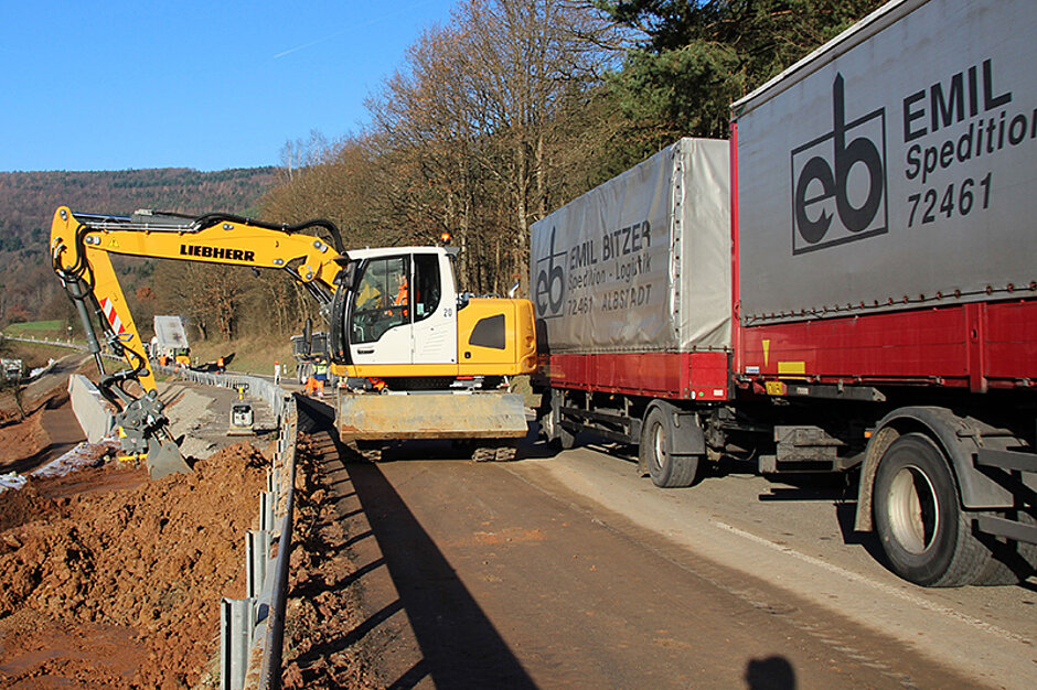 In der Testwoche setze Nacken den Liebherr-Mobilbagger A 918 Compact zur Befestigung einer abgerutschten Straße ein. Maschinenführer Sascha Jennewein war begeistert vom A 918 Compact. Er fährt selbst einen A 900 und bestätigte, dass die neuen Liebherr-Maschinen »wahnsinnig erweitert« wurden. Als besondere Eigenschaft hob er den geringen Spritverbrauch des A 918 Compact hervor, der bei seinem Einsatz in der Testwoche bei durchschnittlich 7,1 l/h lag. Auch die moderne Fahrerkabine mit dem Premium-Fahrersitz gefällt ihm außerordentlich gut. Sie bietet beste Voraussetzungen für gesundes, konzentriertes und produktives Arbeiten. Zudem bietet sie beste Sichtverhältnisse auf den Arbeitsbereich und viel Stauraum im Innenraum der Kabine. Auch die bessere Wartungszugänglichkeit wird von Sascha Jennewein sehr positiv gewertet.