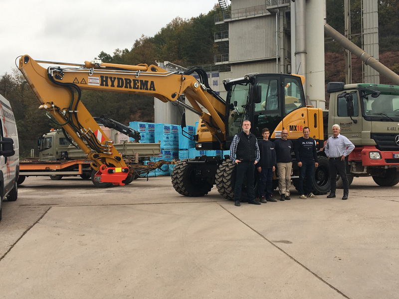 „Wir haben schon immer in Qualität investiert, denn schließlich wollen auch wir Qualität liefern“ erzählt Thomas Gieger und blickt mit Stolz auf sein Unternehmen, das neben dem Baustoffhandel auch Bautransporte und Baggerarbeiten betreibt. Aber auch Abriss- und Aushubarbeiten sowie der Handel mit Düngemittel gehören zu den Dienstleistungen, mit denen das Unternehmen an der südlichen Weinstraße in Rheinland-Pfalz seit Jahren in Verbindung gebracht wird. „Als die Investition eines Mobilbaggers anstand haben wir uns natürlich am Markt vorher einschlägig informiert. Über den HYDREMA wird ja nun seit mehreren Jahren in der Fachpresse berichtet und das, was man hört und auch auf Messen sieht, war ja schon sehr eindrucksvoll. Der zuständige Händler für uns ist die Firma ZWO – Baumaschinen Service GmbH in Oberhausen-Rheinhausen und so konnte problemlos auch ein Testgerät näher begutachtet werden.“
