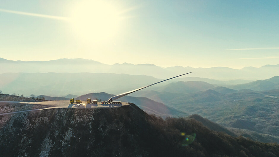 Mit dem mehrere FTV, Pendelachspritschen und Bladex umfassenden Fuhrpark hat der Windkraftprofi bis heute 119 Windparks errichtet. Allein 366 Windkraftflügel beförderte er dabei mit den Flügeltransportvorrichtungen FTV 300 und FTV 550 von Goldhofer.