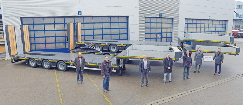 Über das Angebot, die Vermietung und den Verkauf von Spezialaufliegern hinaus ist die im Jahr 2007 gegründete HeavyTrailer AG stark im Gebrauchtfahrzeuggeschäft tätig. »Unser stärkstes Geschäftsfeld bleibt jedoch die Fahrzeugvermietung, daher haben wir bei Goldhofer drei Satteltieflader der neuen Baureihe Stepstar bestellt, die wir jetzt in unseren Mietpark übernehmen konnten«, so HeavyTrailer-Vorstandsmitglied Dennis Arns. Die nachlaufgelenkten Goldhofer-Sattelauflieger sind in drei- bis fünfachsiger Ausführung, mit bzw. ohne Teleskopstufe verfügbar und sollen Transportunternehmen Goldhofer-Qualität zu ansprechenden Konditionen bieten. Die Fahrzeuge verfügen über ein effizientes Ladungssicherungskonzept, eine einfache Bedienung und eine neue Rampengeneration, die über Funk bedient sowie unkompliziert an- und abgebaut wird.