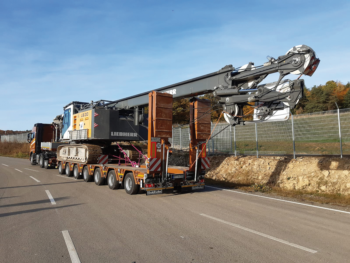 Das modulare System der Starline können Nordbau-Besucher live erleben, als weiteres Exponat wird ein dreiachsiger Stepstar mit Doppelradmulden zu sehen sein. Auch dieses Fahrzeug will durch ein niedriges Eigengewicht überzeugen, das sich durch ein deutliches Plus in der Nutzlast bemerkbar machen soll. Dank der Verwendung vieler Premiumkomponenten liegen die Gesamtbetriebskosten laut Goldhofer unter jenen vergleichbarer Fahrzeuge, was jeden Fuhrpark in der Nutzung erweitere und Wartungsintervalle verlängere. Durch zwei Radmulden lassen sich auch besonders hohe Baumaschinen unter der Erfüllung strenger Höhenrichtlinien transportieren. Die Radmulden verfügen über einen niedrigen, mit Kletterleisten versehenen Einfahrwinkel, um ein sicheres Befahren von Radfahrzeugen mit niedrigem Böschungswinkel zu ermöglichen. Ebenfalls kann die Radmuldentiefe der Bodenfreiheit der einzufahrenden Maschine angepasst werden.