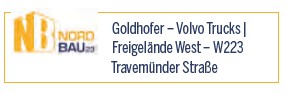 Mit dem MPA stellt Goldhofer ein weiteres Highlight seines Sortiments auf der Nordbau aus. Auf technischer Seite bietet der Allrounder mit MacPherson-Achstechnologie eine hohe Seitenstabilität. Durch die geringe Anzahl von Bauteilen gilt die Achse als deutlich wartungsarm. Zusätzlich ist sie für hohe Achslasten von 15,6 t bei 20 km/h, einen großen Lenkeinschlag von 60° und eine niedrige Ladehöhe von nur 785 mm ausgelegt. Der biegesteife Fahrzeugrahmen zeigt sich laut Goldhofer langlebig im harten Baustellenalltag. Der in Neumünster ausgestellte 7-Achser ist das erste Fahrzeug der Goldhofer-Markenbotschafterin Iwona Blecharczyk mit ihrem Unternehmen Imagination Transport. Sie will es sich daher nicht nehmen lassen, ihren ersten eigenen Schwerlastzug mit neuer Volvo-Zugmaschine persönlich vorzustellen.