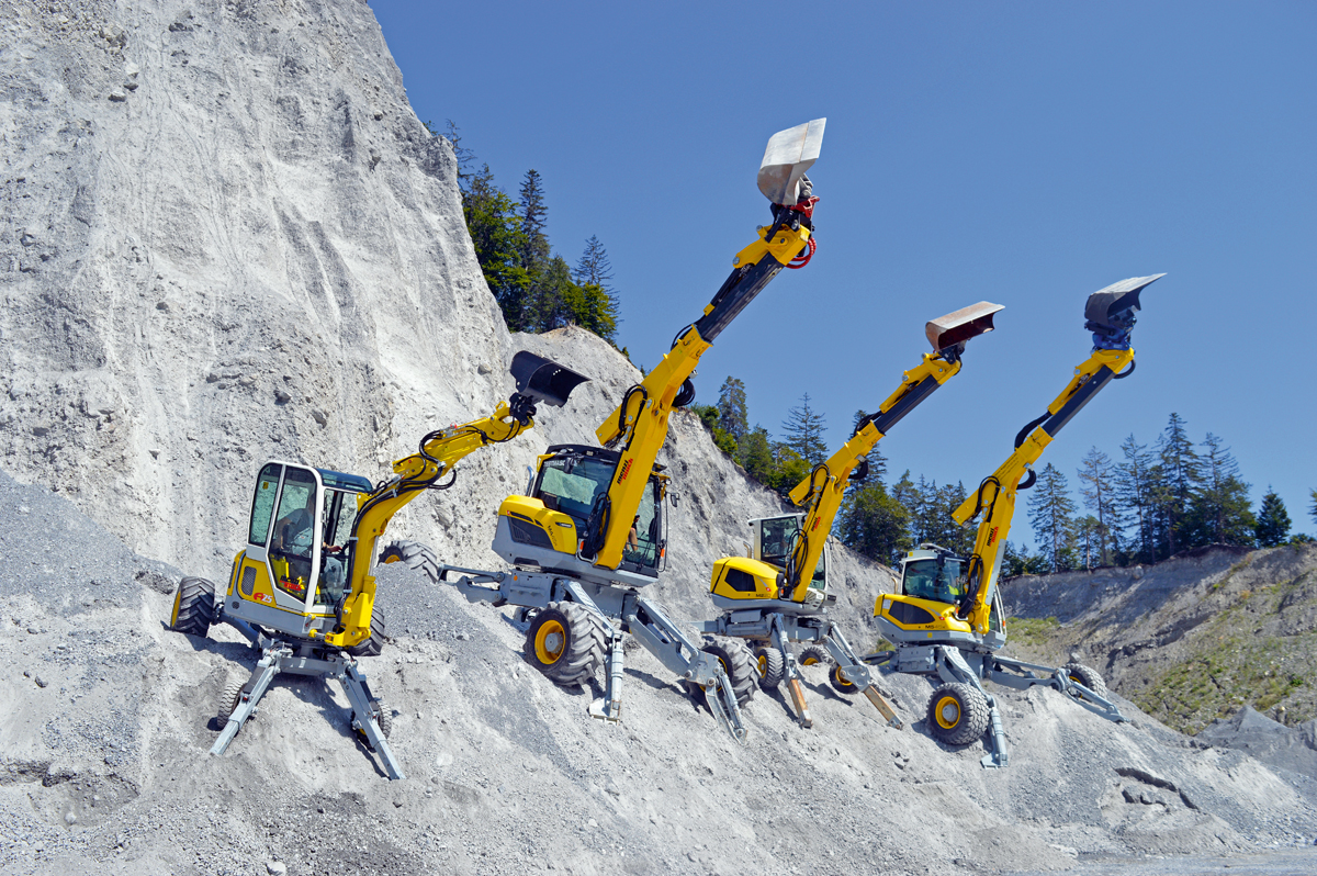 von 2 100 mm und bietet eine Löffel-Ausbrechkraft von 1,3 t sowie Stiel-Reißkraft von 600 kg. Beim Jansen »MB-360°« verrichtet ein 10 PS starker Briggs & Stratton-Benziner seinen Dienst. Hier liegt die Grabtiefe ebenfalls bei ca. 2 100 mm und Reißkraft bei etwa 550 kg. Der Mini-Schreitbagger »Kintore« von Wematik verfügt ebenfalls über ein Briggs & Stratton-Aggregat mit 9,5 PS Leistung und kommt auf eine Grabtiefe von 1 357 mm. Alle Hersteller verbauen eine AHK-Zugvorrichtung und sind mit einem 360°-Drehkranz, Schnellwechsler und Löffel ausgestattet. Dazu sind verschiedene Anbaugeräte, wie hydraulische Hämmer, Erdbohrer, Greifer aller Art usw., erhältlich.