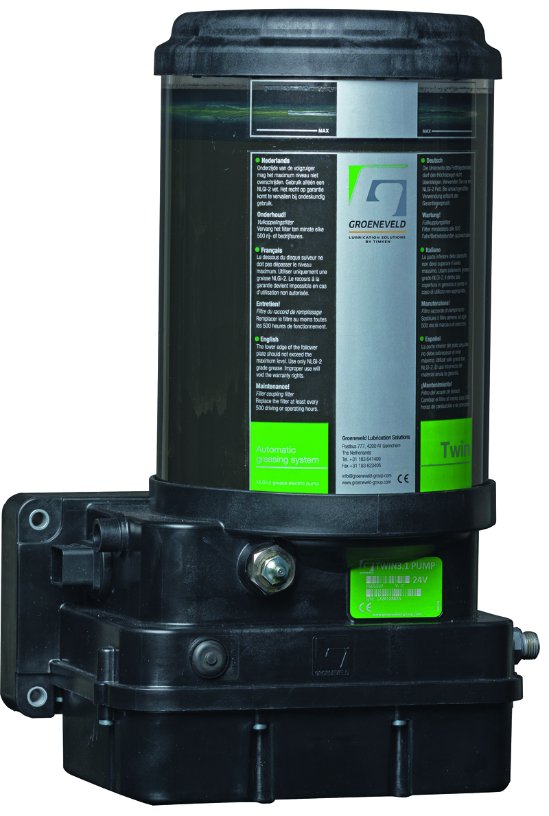 Am Stand von Groeneveld sind weitere neue Produkte eingeführt worden, die alle auf die Reduzierung von Standzeiten und Kosten bei gleichzeitiger Optimierung der Einsetzbarkeit zielen. Für die Schmierung anspruchsvoller Anwendungen wie großen Radladern, Kippern und Baggern, sieht Groeneveld sein Zweileitungssystem Twin als bestes System der Klasse. Daneben waren weitere automatische Schmiersysteme auf der Bauma zu sehen, beispielsweise das TriPlus mit bis zu drei unabhängig betriebenen Schmierkreisen oder das Twin XL, das von Groeneveld als »ultimatives Schmiersystem« für die größten Erdbewegungsmaschinen angekündigt wurde. §