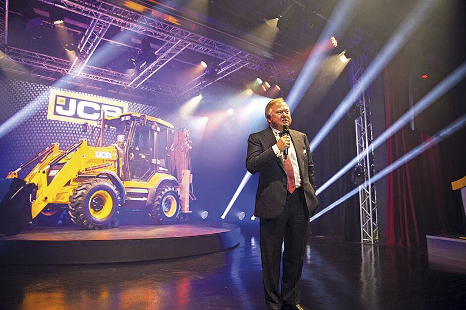 Sichtlich stolz nahm Lord Anthony Bamford, JCB-Chairman und Sohn des Firmengründers, an der Präsentation des neuen Baggerladers 3CX Compact im »JCB-Theatre« teil und gab Hintergrundinformationen zur Neuheit. Das neue Modell 3CX Compact ist im Vergleich zum 3CX insgesamt um 35 % kleiner geworden und bietet dank hydrostatischem Antrieb und dem 74 PS starken »JCB Diesel by Kohler«-Motor eine Maximalgeschwindigkeit von 40 km/h bei einem Wendekreis von nur 5,8 m.