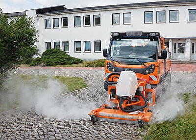 Mit dem neuen Abbiegeassistenten für Kommunaltechnikmaschinen will Hako Abhilfe schaffen. Das Kamera-Software-System der Firma Luis Technology erkennt Fußgänger und Fahrradfahrer im toten Winkel und gibt eine optische und akustische Warnung. Dabei werden statische und sich entfernende Objekte herausgefiltert.