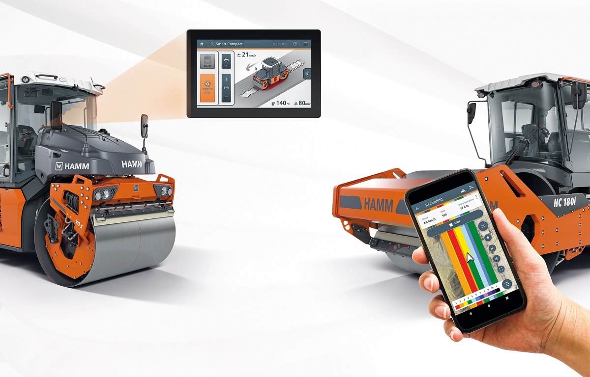 Das Segment der Kompaktwalzenzüge (5 t bis 7 t) wird künftig durch die Serie HC CompactLine abgedeckt. Die 7-t-Walze ist in dieser Gewichtsklasse die laut Hamm nach wie vor kompakteste Walze am Markt. Gegenüber den Vorgängern hat der Hersteller den Fahrkomfort weiter verbessert sowie die Traktion und Steigfähigkeit erhöht. Auch für die HC CompactLine stehen verschiedene digitale Werkzeuge zur Verfügung, insbesondere die App »Smart Doc« für die GNSS-basierte Eigenüberwachung und Dokumentation.