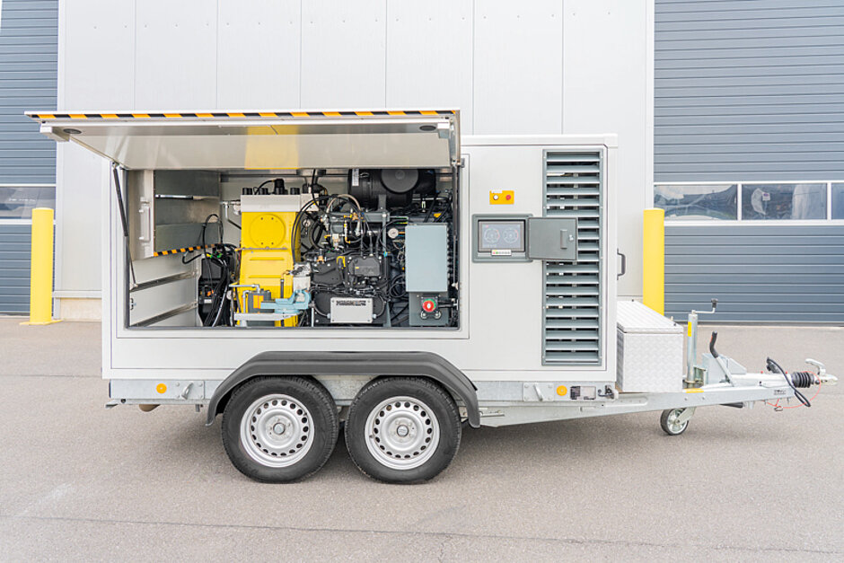Umfangreiche Optionen, wie eine Aufbewahrungsbox auf der Deichsel, ein Frostschutzsystem oder ein schwenkbarer Schraubstock, ermöglichen die individuelle und angepasste Ausstattung des Aggregats.