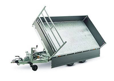 Neu ist jetzt der hydraulisch kippbare Plattformanhänger Indigo HT mit Parabelfeder erhältlich. Der Lieferumfang umfasst auch die vom Indigo LF bewährte verstärkte Rohr-Zugdeichsel.