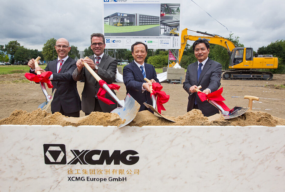 Mit dem ersten Spatenstich im Europark Fichtenhain starteten im Juli der Vorsitzende der Geschäftsführung von XCMG, Wang Min, der Wirtschaftsminister des Landes Nordrhein-Westfalen, Garrelt Duin, und die Oberbürgermeister der Städte Xuzhou, Zhu Min, und Krefeld, Gregor Kathstede, die Bauarbeiten. Erstmals wird ein Forschungszentrum von XCMG außerhalb Chinas gebaut. Zudem ist der Standort europäisches Hauptquartier; die Erschließung des europäischen Marktes soll hier geplant und gesteuert werden. Rund 50 Mio. Euro investiert XCMG, mit einem Jahresumsatz von rund 10 Mrd. US-Dollar einer der größten Baumaschinenhersteller weltweit, in Krefeld. Wang Min, der Vorsitzende der Geschäftsführung von XCMG, stellte anlässlich des Festaktes die Strategie des Unternehmens vor: »Wir beabsichtigen, bis zum Jahr 2015 unseren Umsatz zu verdreifachen und an die Weltspitze der Bagger- und Baumaschinen-Produzenten vorzurücken. Dabei spielt Europa eine entscheidende Rolle. Mit der Gründung von XCMG Europe und der Investition in dieses Forschungszentrum machen wir qualitativ einen großen Sprung nach vorne. Hier entwickeln wir schon bald die Schlüsseltechnologien für die globalen Märkte von morgen.«