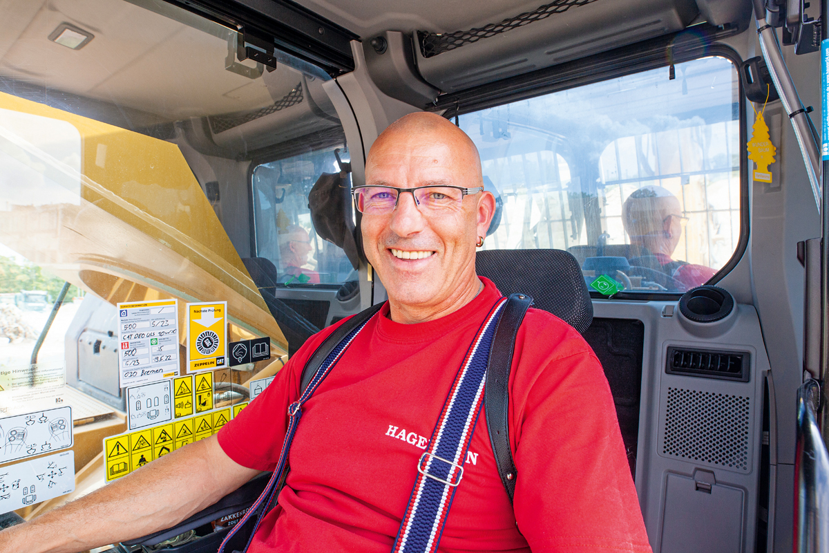 Im Rahmen eines großen Abbruchprojekts an der Breslauer Straße in Nürnberg, bei dem rund 600 000 m3 an Raum zurückgebaut werden müssen, wird Mensch wie Maschine gleichermaßen viel abverlangt. Guido Manthe, der täglich seinen rund 95 t schweren Bagger durch enge Baugruben dirigiert, kann auf viele Erfahrungswerte zurückgreifen – aber selbst für ihn stellt das Großprojekt eine Besonderheit dar: »Seit fünf Jahren bin ich bei Hagedorn und arbeite als Baumaschinenführer. Die Baustelle hier in Nürnberg ist wirklich etwas Besonderes, allein wegen der Größe«, sagt Guido Manthe und lässt den Blick über das 100 000 m2 große Gelände schweifen; an vielen Stellen »knabbern« Kettenbagger von Hagedorn an den wenigen noch stehenden Gebäudemauern, schaufeln Radlader Erdreich auf Muldenkipper und sorgen mit jedem Arbeitsgang für etwas mehr Ordnung auf der Großbaustelle. Das bestätigt auch Alexander Lukic, der als Junior-Bauleiter den reibungslosen Ablauf auf der riesigen Baustelle und vor allem auch die Fahrwege der zahlreichen Lkw, Lader und Bagger organisieren muss.