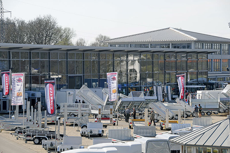 Auch im Verkaufssegment der schweren druckluftgebremsten Lkw-Anhänger bietet Wörmann ein komplettes Programm an Fahrzeugen an. So sind Tieflader von 5 t bis 40 t, 3-Seitenkipper oder vielseitig verwendbare Multifunktionsanhänger, die als Maschinentransporter oder 3-Seitenkipper einsetzbar sind, vorrätig. Insgesamt stehen auf dem 50000 m2 großen Betriebsgelände rund 2000 neue und 500 gebrauchte Anhänger für jede Transportaufgabe zur Mitnahme bereit. Das Angebot von Wörmann wird während der Messe durch weitere Aussteller aus der Region ergänzt. So können sich Besucher nicht nur über Anhänger, sondern auch über passende Zugfahrzeuge informieren. Der Mercedes-Benz TruckStore München zeigt gebrauchte Nutzfahrzeuge aus seinem Angebot.