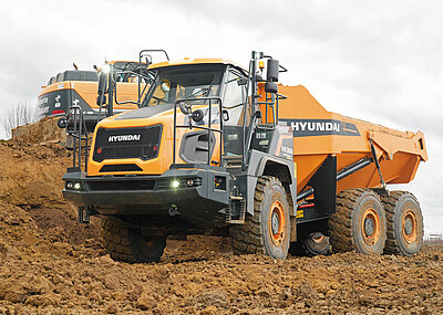 Das hydraulisch absetzbare Heckgewicht erhöht die Flexibilität und vereinfacht die Transporte auf den öffentlichen Straßen: So können beispielsweise Sondergenehmigungen bei geteilten Ladungen einfacher erlangt werden. Beim aktuell leistungsstärksten HD Hyundai-Kettenbagger überzeugen Stufe V Motor, das neue Design sowie umfangreiche Neu- und Weiterentwicklungen bei Komponenten und Bedienung. Die Hyundai-HX-Kettenbaggerserie mit Einsatzgewichten von 12 bis 52 t beschreibt der Hersteller als »ideale Trägergeräte«.