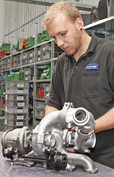 Umfassend ist auch das Spektrum im Bereich der Tausch-Turbolader. Insbesondere bei älteren Fahrzeugen und/oder Motoren mit hoher Laufleistung werden diese immer wieder nachgefragt. Deshalb bieten die Turbolader-Spezialisten im Rahmen ihres Motair-Reco-Turbo-Programmes auch industriell wiederaufbereitete Turbolader an.»Funktional entsprechen die von uns in einem mehrstufigen und aufwendigen Prozess wiederaufbereiteten Turbolader dem Originalteil«, betont Motair-Geschäftsführer Andreas Solibieda. Er verweist auch auf den Vorteil, dass durch das Recycling wertvolle Ressourcen geschont werden. Zudem erhält der Kunde die gleiche Gewährleistung wie beim Original-Neuteil. Alle Arbeiten werden von Motair strikt nach Herstellervorgaben und mit Originalersatzteilen ausgeführt.