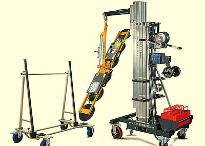 Das im Jahr 2006 von Günter Übelacker mit zwei Mitarbeitern und einem kleinen Gerätepark für die Glasmontage gründete bayerische Unternehmen Heavydrive bietet heute Montageanlagen für Scheiben mit einem Gewicht von bis zu 10 t und einer Länge von bis zu 24 m. Für jeden Einsatz werden die Anlagen individuell nach Kundenwunsch und Baustellensituation konfiguriert und getestet. Optional kann zu den Geräten ein Bediener gebucht werden. Zum Heavydrive-Service gehört auch eine ausführliche Beratung in der Projektplanung.