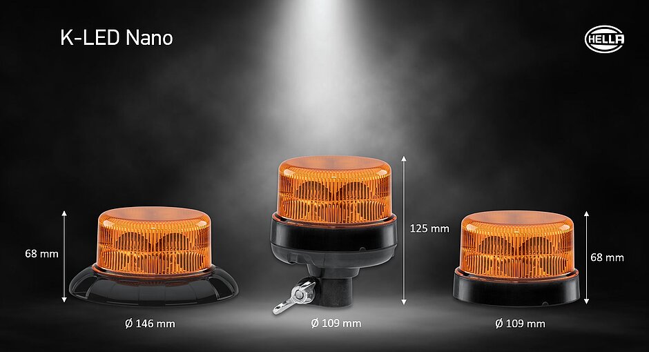 Der Licht- und Elektronikexperte HELLA bringt die bisher kleinste, homologierte Kennleuchte auf den Markt: die K-LED Nano bietet mit einer Höhe von lediglich 68 Millimetern LED-Technologie auf kleinstem Raum. Damit ist sie besonders für Kommunalfahrzeuge, Traktoren und große Fahrzeuge geeignet, die eine Höhenbeschränkung einhalten müssen oder aber wenig Anbaufläche zur Verfügung haben. Die Kennleuchte ist ab sofort verfügbar.