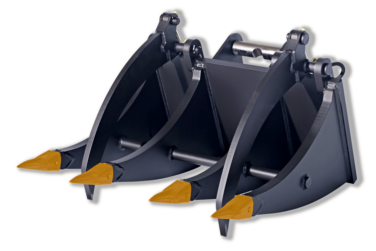 Die an den klassischen Roderechen angelehnte Bauform soll den Roderechen mit Niederhalter ideal für typische Rodearbeiten und die Sortierung von Gestrüpp eignen. Mit den vier aus hochverschleißfestem Hardox-Stahl gefertigten und mit auswechselbaren Zahnspitzen verstärkten Zinken können auch Böden aufgelockert werden. Zwei hydraulische Niederhalter erlauben es, Steine zu greifen und zu versetzen sowie Gestrüpp zu sammeln und umzuschlagen.