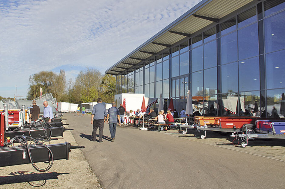 Dank des sonnigen Herbstwetters nutzten viele Besucher das Freigelände für einen Spaziergang über das große Firmenareal, auf dem alle neuen und gebrauchten Anhänger besichtigt werden konnten. Anschließend lockte der beheizte, 2 500 m² große XXL-Showroom mit weiteren Anhängermodellen, einer Ausstellung der Zubehörteile und einem Gastrobereich.