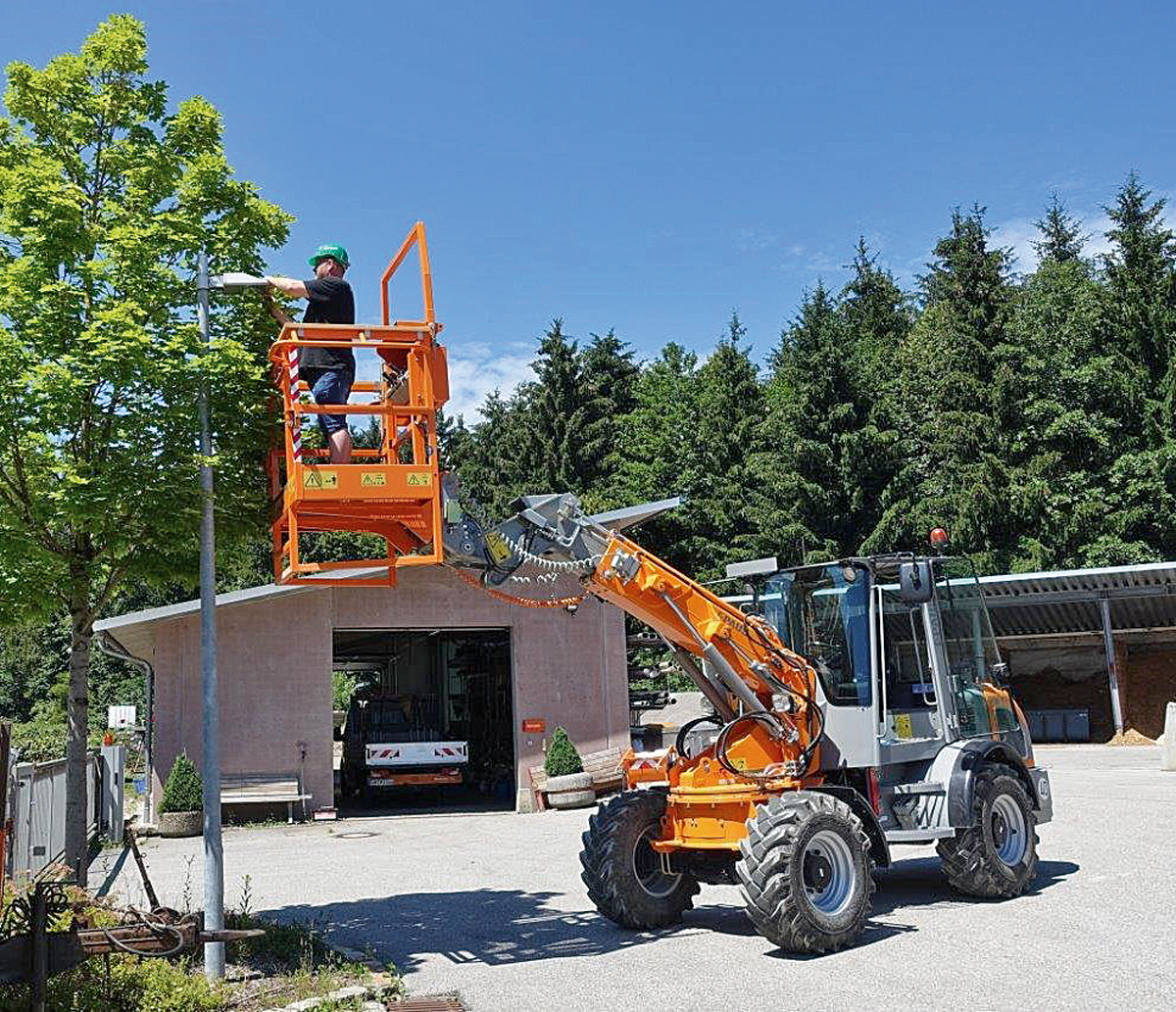 Für die kommunalen Einsätze wurden die Multifunktionsgeräte mit Arbeitskörben entwickelt, um die besonderen Anforderungen in diesen Bereichen optimal zu bedienen. Mithilfe der Paus-Maschinen und der werkseitig abgenommenen Anbaugeräte können vielfältige Arbeiten wie Straßenpflege, Mulch- und Mäharbeiten, aber auch alle Ladetätigkeiten mit Ausschütthöhe von mehr als 4 m vollwertig ausgeführt werden. Neben den Arbeitskörben bietet der Hersteller die Selbstfahrbühne SL 9075 T7 an, die sich aus dem Arbeitskorb bedienen und verfahren lässt, um Arbeiten in Höhen, im »Ein-Mann-Betrieb«, zu erledigen. Dadurch werden aus Ladern multifunktionale Werkzeugträger, die vielfältige Aufgaben wirtschaftlich erledigen.