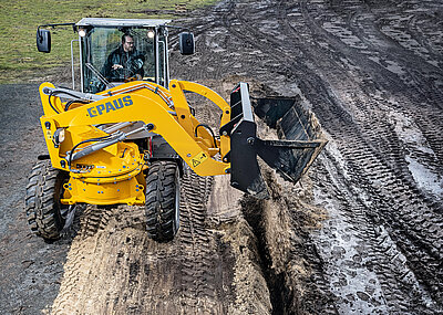 Mit seinem um 180° schwenkbaren Hubwerk und der 40°-Knicklenkung zu beiden Seiten überzeugt der Paus-Schwenklader »SL 9075« durch, wie der Hersteller betont, »herausragende Manövrierfähigkeit – ideal für den Einsatz auf beengten Baustellen«. Aufgrund des Vier-Punkt-Schnellwechselsystems meistere der »SL 9075« eine Vielzahl an Aufgaben effizient und kraftsparend: seitliches Verfüllen von Gräben, Planierarbeiten, Oberflächenverdichtung, Plattenverlegung oder Rasenpflege – insbesondere im Kabel- und Straßenbau, Garten- und Landschaftsbau sowie Netzbau. Seine hohe Wendigkeit und Flexibilität mache den »SL 9075« zur klugen Lösung für urbane Baustelleneinsätze. Selbst auf engstem Raum sollen Aufgaben ressourcenschonend und mit hoher Produktivität erledigt werden.