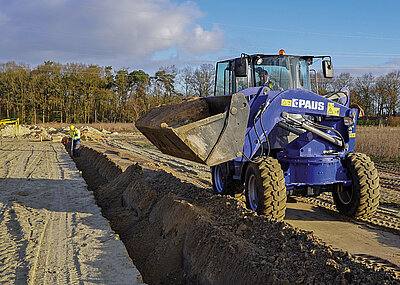 Mittels seiner hohen Wendigkeit und Standfestigkeit, selbst bei starken Steigungen, ist der Dumper »AKR 9060« das ideale Flurfahrzeug für anspruchsvolles Gelände. Der stufenlose, hydrostatische Allradantrieb mit zwei Fahrstufen sorgt für beeindruckende Zugkraft, während die automatische Feststellbremse zusätzliche Sicherheit gewährleistet. Mit einem Muldenvolumen von 3 240 l, Ausschüttweiten von 680 mm in Fahrtrichtung und 330 mm seitlich ersetzt der »AKR 9060« aus Sicht von Paus mühelos einen Lkw auf der Baustelle und steigere damit die Effizienz der Abläufe deutlich. Ein weiterer Vorteil: Für das Führen des »AKR 9060« genügt ein Führerschein der Klasse L, der bereits in den Klassen B und T enthalten ist. So kann das Fahrzeug ohne zusätzliche Schulung oder kostspieligen Lkw-Führerschein direkt vom vorhandenen Personal genutzt werden.
