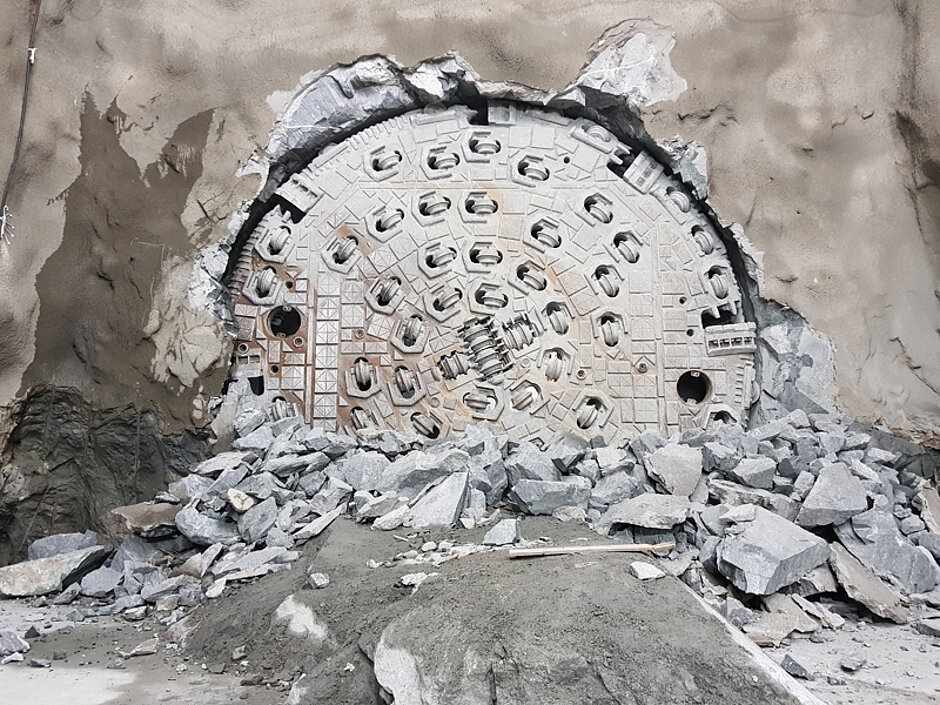 Auch während des Vortriebs arbeiten die Bohr-und Serviceteams eng zusammen. In Schwanau kümmern sich bis zu 40 Sanierungsexperten um die professionelle Wiederaufbereitung der Schneidrollen. Mit der Güte der Abbauwerkzeuge steht und fällt der Vortrieb. Gefertigt aus Spezialstahl, 19 Zoll im Durchmesser sind sie rund 190 Kilogramm, die Zentrumsschneidrollen sogar 372 Kilogramm schwer. Sie werden mit bis zu 32 Tonnen Druck auf 70 Ringbahnen gegen den extrem abrasiven Fels gedrückt. Die geologischen Bedingungen führen zu hohem Verschleiß. Während des gesamten Projekts müssen auf jeder Maschine rund 4.250 Rollenwechsel ausgeführt werden. „Niemals zuvor habe ich es mit einem derart harten Gestein zu tun gehabt. Das packt man nur mit Teamwork“, so Francesco Giampietro, langjähriger TBMManager bei Ghella.
