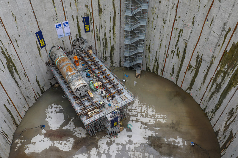 Die beiden EPB-Schilde sind die einzigen Maschinen im gesamten Projekt, welche im Tübbingausbauverfahren arbeiteten. Mit einem Innendurchmesser von 2,6 Metern zählen die Doppelröhren zu den kleinsten Tübbingtunneln der Welt. Entsprechend kompakt wurde die gesamte Vortriebsanlage mit einer Länge von rund 85 Metern konstruiert. Auch die Logistik war für den kleinen Durchmesser angepasst: So kam ein Abraumkonzept mit Förderlok zum Einsatz, bei dem der Abraum in Kübeln zum Schacht und die fertigen Segmente zur Ortsbrust transportiert wurden.