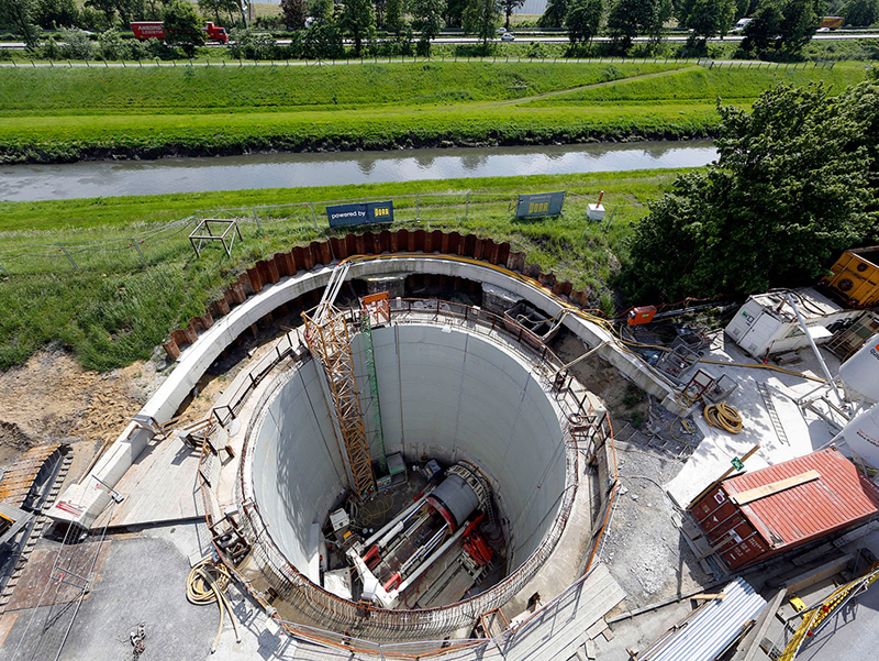 Die Arbeiten am Gesamtprojekt Emscher-Umbau begannen bereits im Jahr 1992 und umfassen mehr als 400 Kilometer an neuen unterirdischen Abwasserkanälen. Besondere Herausforderungen bei der Erstellung der notwendigen Tunnelbauwerke ergaben sich durch den inhomogenen Baugrund, die bis zu 40 Meter tiefe Rohrlage, lange Rohrvortriebsstrecken, die streckenweise anspruchsvolle Logistik und die unterschiedlichsten Bausituationen. Fast 25 Jahre lang setzten die ausführenden Bauunternehmen für den Vortrieb im Untergrund auf den Bauabschnitten 20, 30 und 40 auf projektspezifisch angepasste Vortriebstechnik von Herrenknecht. Darunter zahlreiche AVN-Maschinen für gesteuerten Rohrvortrieb im kleineren Durchmesserbereich, EPB-Schilde im Rohrvortriebs- und Segmental-Lining-Ausbauverfahren sowie eine Schachtabsenkanlage VSM zum Abteufen eines 23 Meter tiefen Startschachts. Über 60 Kilometer der Haupt- und Nebenstrecken stellten Bauunternehmen mit Herrenknecht-Vortriebstechnik her. Bei einzelnen Bauabschnitten unterstützen die Herrenknecht-Konzernpartner den zügigen Gesamt-Bauablauf. VMT lieferte TBM-Navigationssysteme sowie verschiedene Kommunikations-, Datenmanagement- und Sicherheitssysteme. Herrenknecht Formwork produzierte Tübbing-Schalungen, MSD Rolling Stock, eine Hebetraverse und einen Kipptisch für das Rohrwerk in Gelsenkirchen.